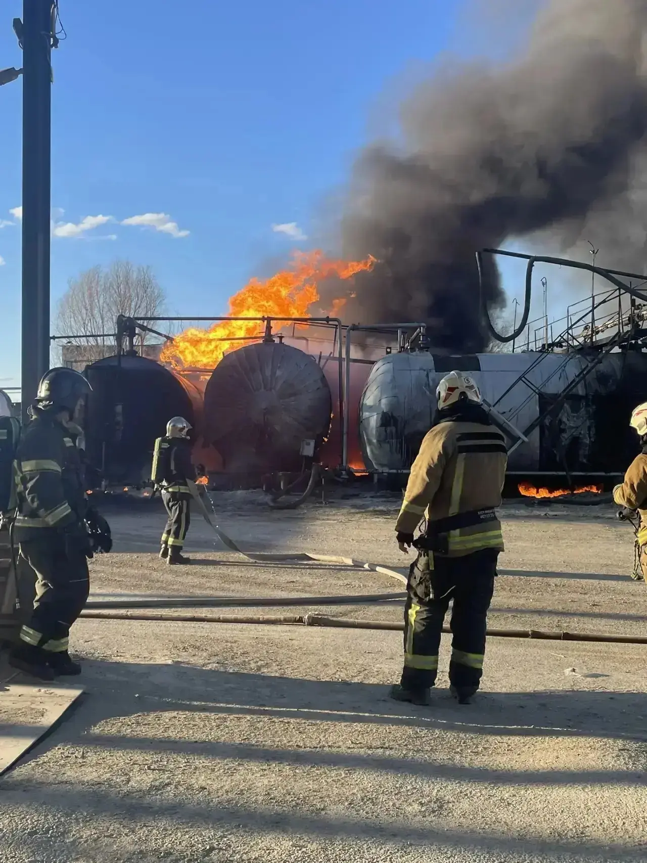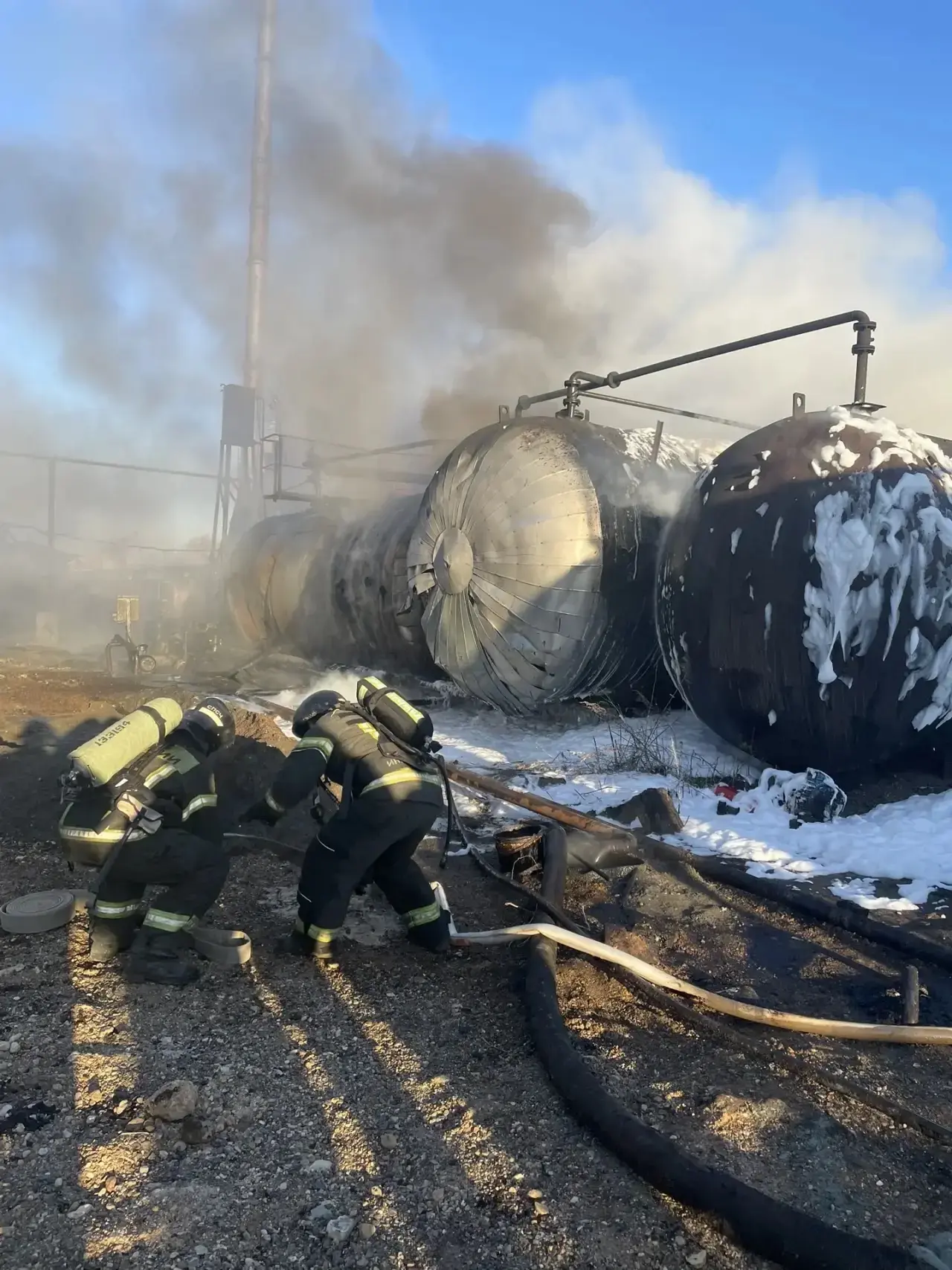 Горят ёмкости с нефтепродуктами на площади 150 квадратных метров.