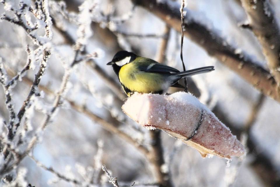 Синиц в Оренбуржье в морозы подкармливают салом