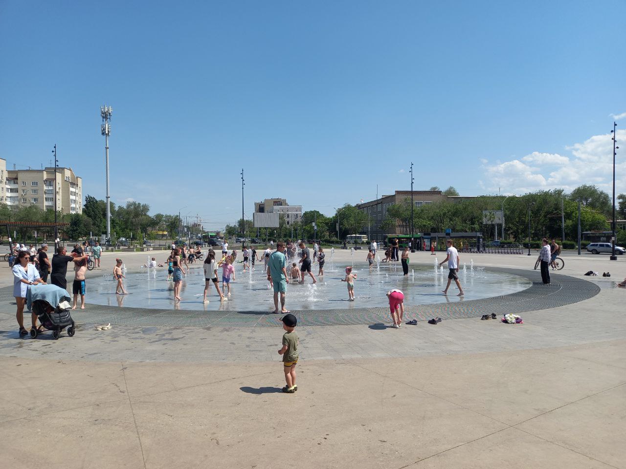 Еще более радуются дети. Летом место у фонтана превращалось в пляж, где ребятишки резвились от всей души.