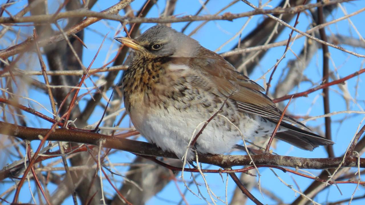 В компанию к ним затесался и дрозд-рябинник — тоже решил подзарядиться от солнца. Заповедник живет своей обычной жизнью, а мы за ним наблюдаем.