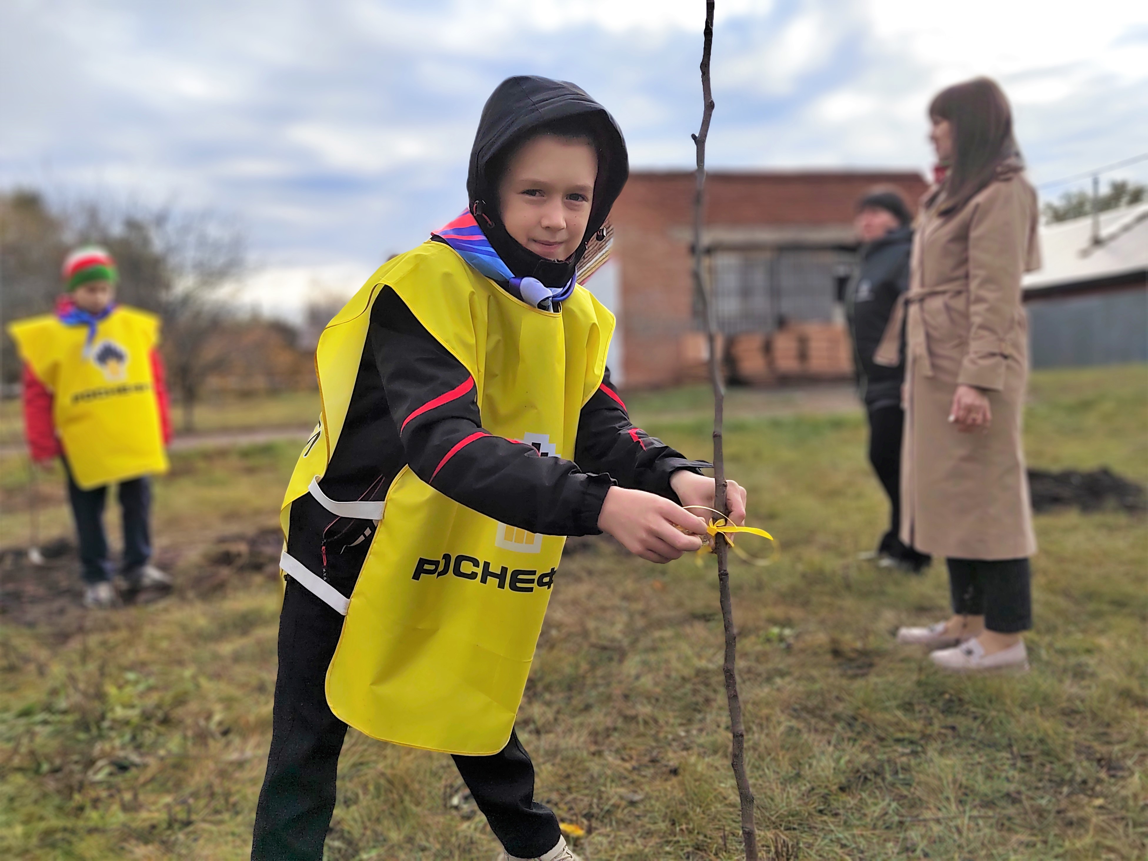 Лучшие экоактивисты — ученики старших и младших классов — под руководством педагогов и сотрудников предприятия бережно сажали и окучивали саженцы, которые весной уже порадуют ребят своим первым цветением.