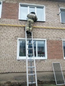 Спасатели, используя лестницу, проникли через окно в квартиру и открыли дверь. К счастью, с ребенком все в порядке.