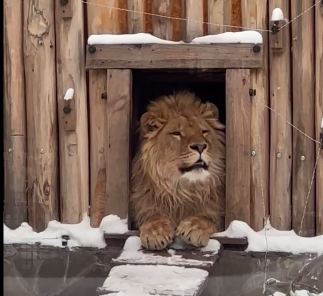 Спасённый в Оренбуржье лев Цезарь морозов не боится
