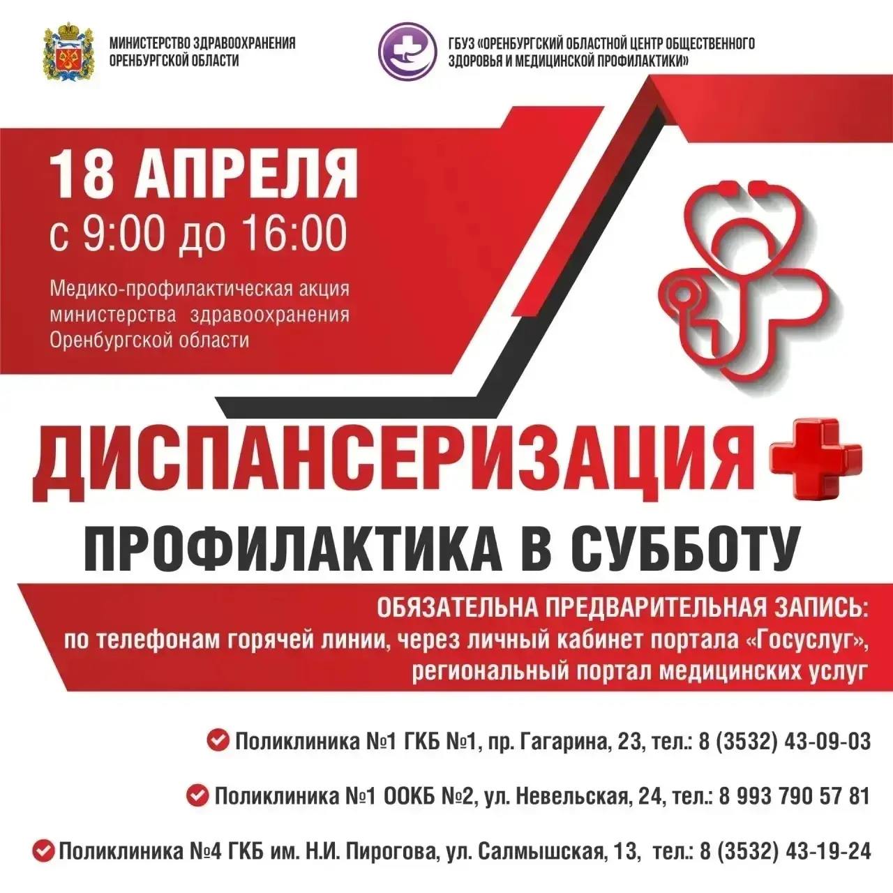 - поликлиника №4 (ГБ им. Пирогова, ул. Салмышская, 13) — 8 (3532) 43-19-24.