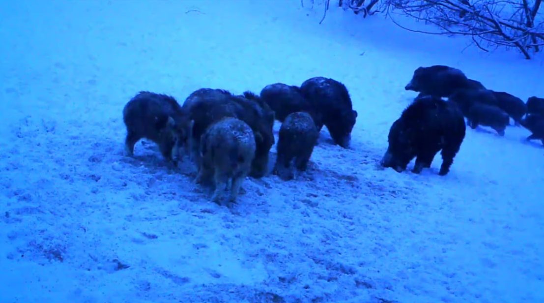Вот и фотоловушка в национальном парке «Бузулукский бор» подловила типичный эпизод из кабаньей повседневности. У кормушки — деловая суета, но стоит появиться матёрой самке с выводком, как все мгновенно «включают режим смирения». Ни толчка, ни попытки пролезть без очереди.