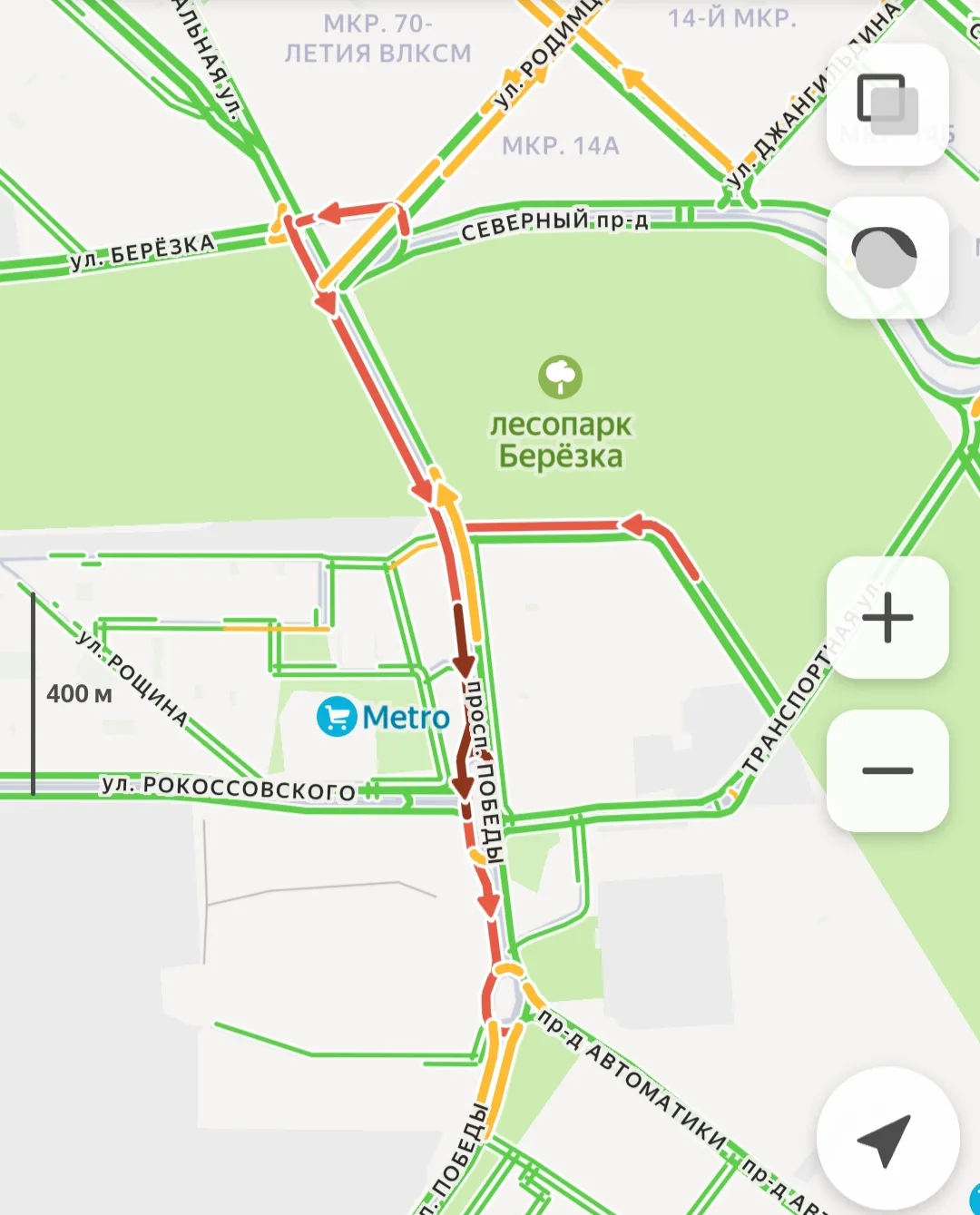 -Проспект Победы: «краснеет» участок в районе ОГУ и пересечения с ул. Маршала Жукова.