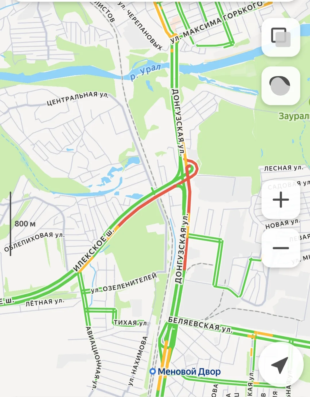 -Улица Донгузская: традиционный затор перед мостом через Урал — планируйте лишние 15-20 минут на дорогу из Южного.