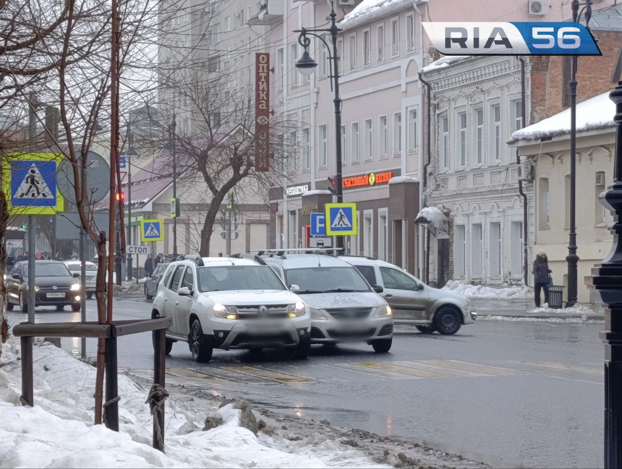 На дорогах также крайне скользко. Из-за ледяного наста выросла аварийность: в центре Оренбурга уже «притерлись» две машины.