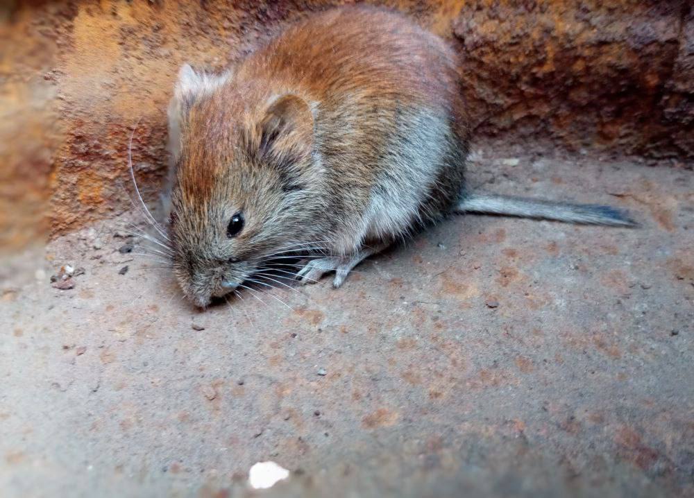 Красная полёвка — грызун до 120 мм в длину с тёмно‑красной спиной. Питается семенами и побегами.