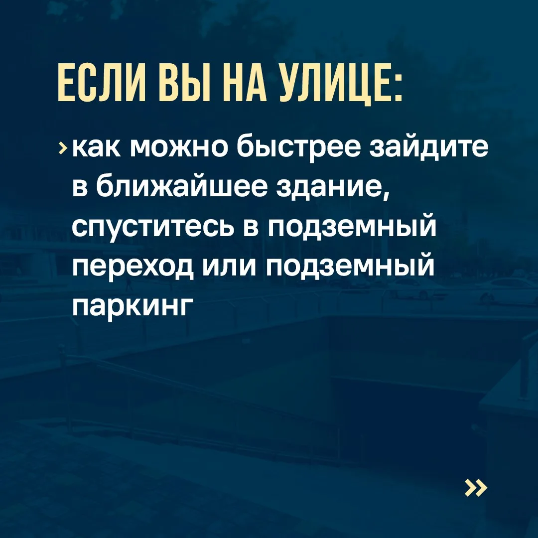Алгоритм действий, если вы находитесь на улице, в помещении — опубликован на карточках.