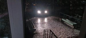 Оренбуржцы, проживающие на улице Новой, также присылают фото, на которых видно, что вода подступила прямо к подъезду и всё засыпано градом.
