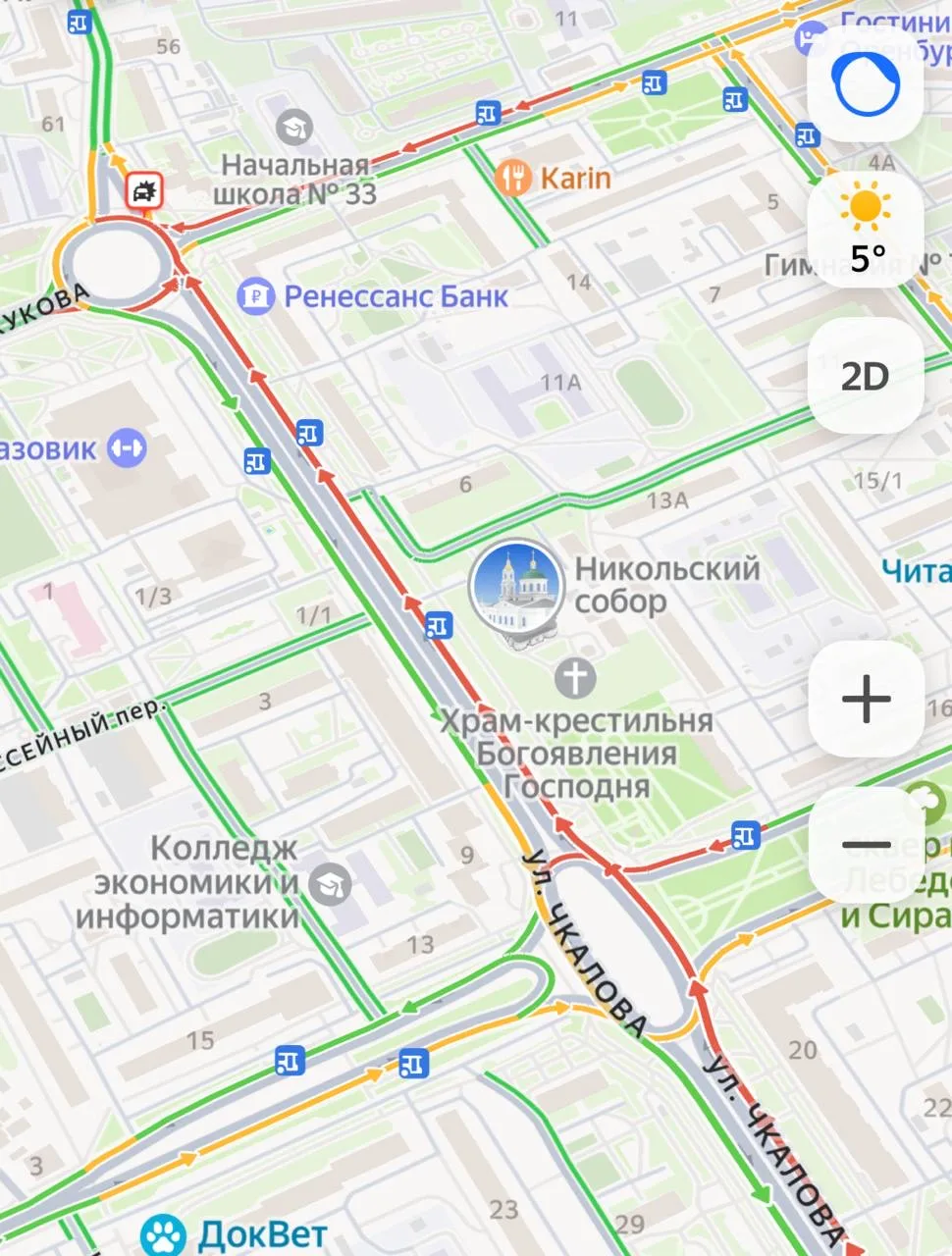 -Улица Терешковой: плотный поток в сторону центра, особенно на пересечении с ул. Рыбаковской и ул. Хабаровской.