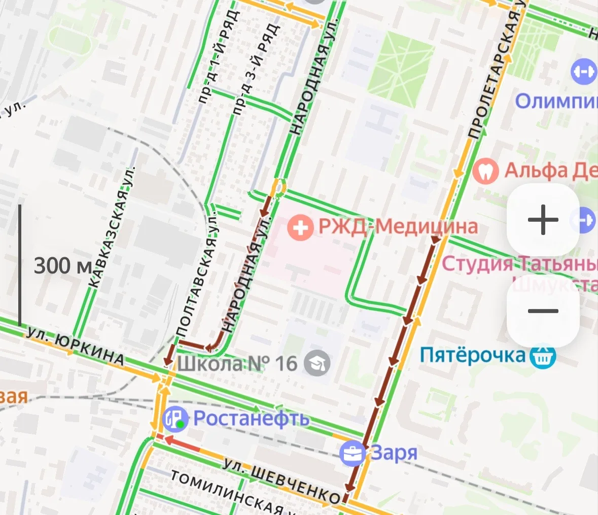 -Улица Пролетарская: заторы на участке от ул. Шевченко до ул. Ноябрьской.