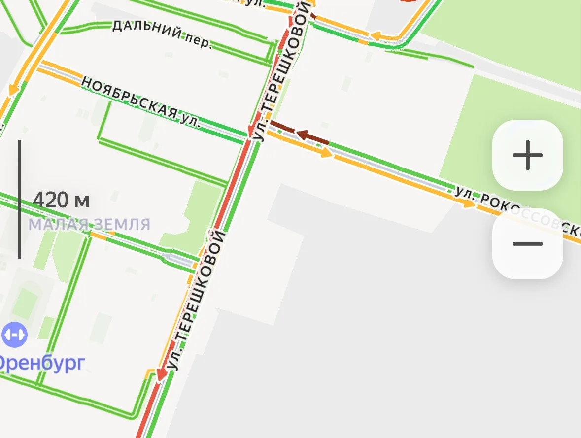 -Улица Терешковой: традиционная пробка на мосту и в районе пересечения с ул. Шевченко.