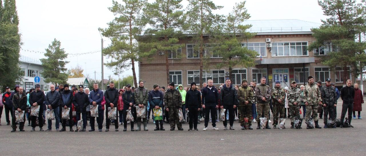 В Илекском районе 18 октября проводили очередную группу мобилизованных мужчин на боевое слаживание.