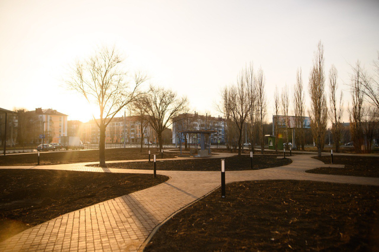 Новое современное пространство расположено на территории площадью 3,4 гектара. Здесь создано новое место для прогулок, отдыха и проведения городских праздников. Стоит заметить, что при планировании дорожек сохранили все деревья и насаждения.