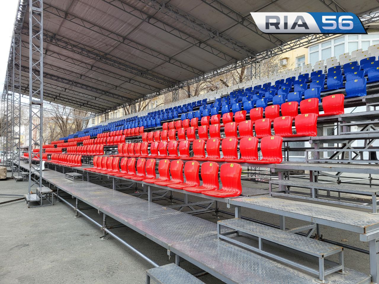 В Оренбурге на площади Ленина почти закончен монтаж трибун ко Дню Победы