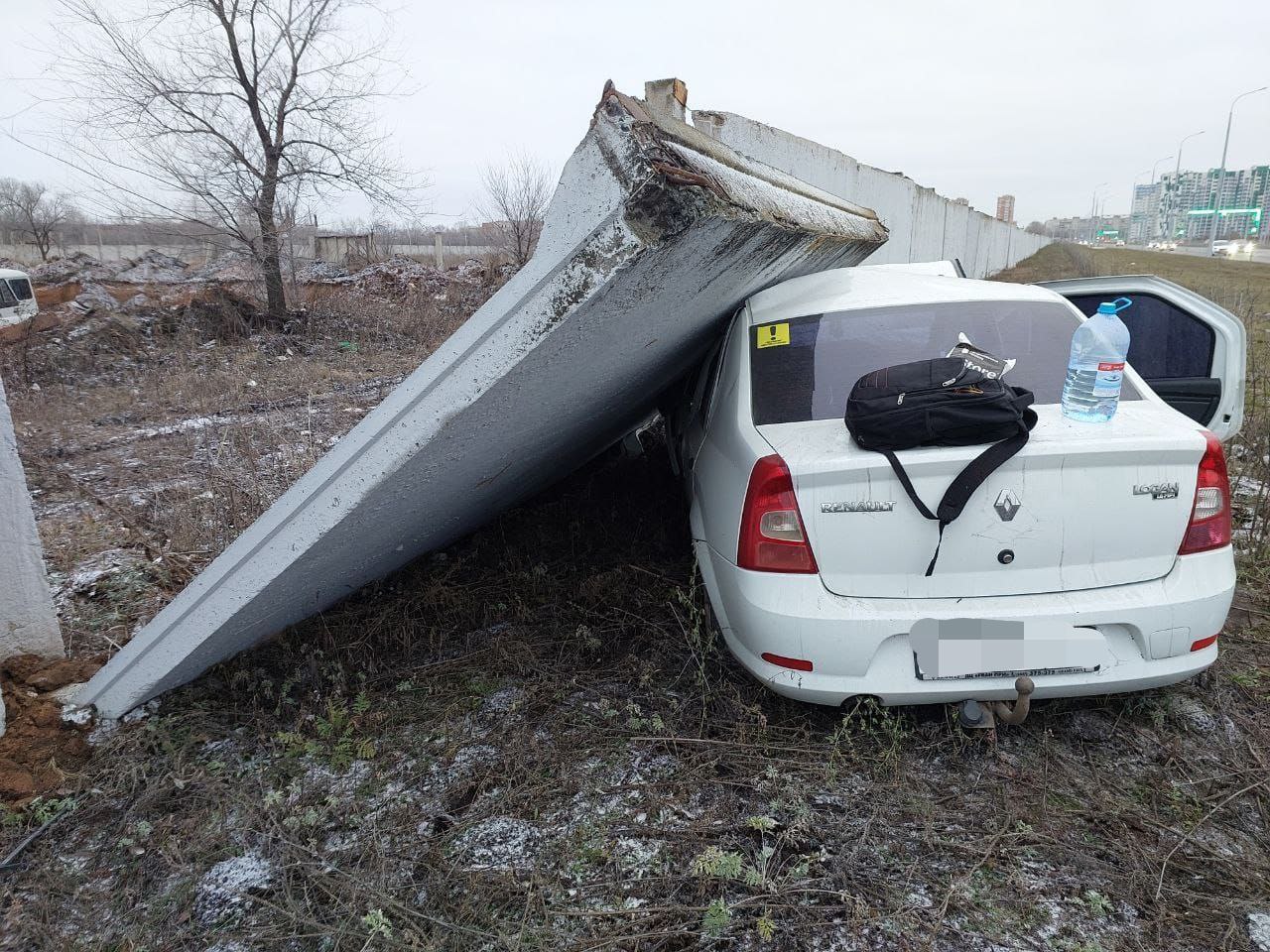 В Оренбурге на Рокоссовского водитель на «Рено» врезался в бетонный забор