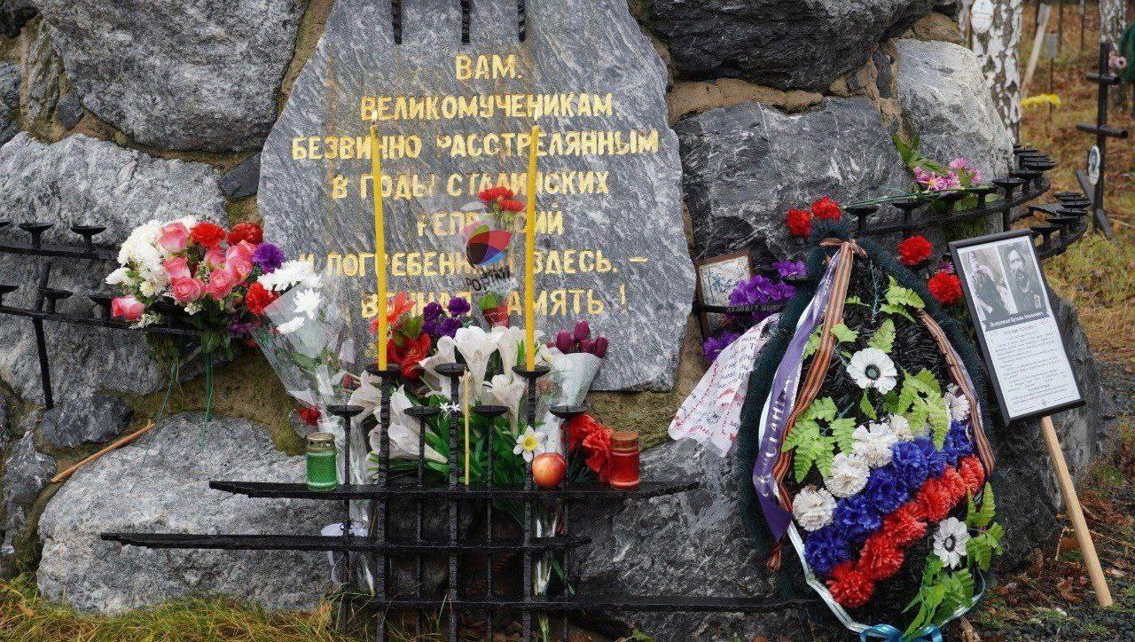 Присутствующие почтили память жертв политических репрессий минутой молчания и возложили цветы к мемориалу.