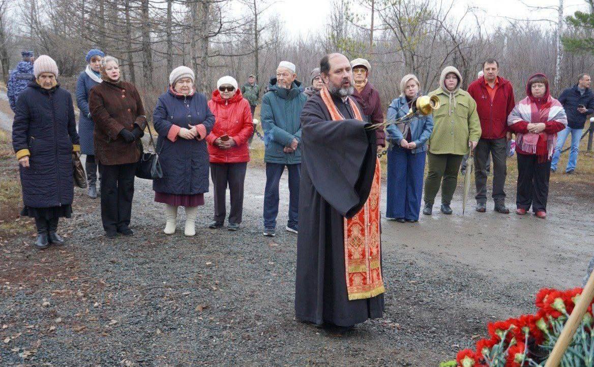 У поклонного креста в Зауральной роще собрались десятки людей, чтобы почтить память безвинно пострадавших.