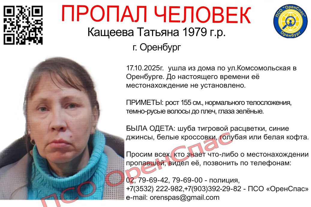 Всех, кто знает что-либо знает о местонахождении пропавшей, видел ее, просят позвонить по телефонам: 02, 79-69-42, 79-69-00 — полиция, +7(3532) 222-982, +7(903)392-29-82 — ПСО «ОренСпас» e-mail: orenspas@gmail.com