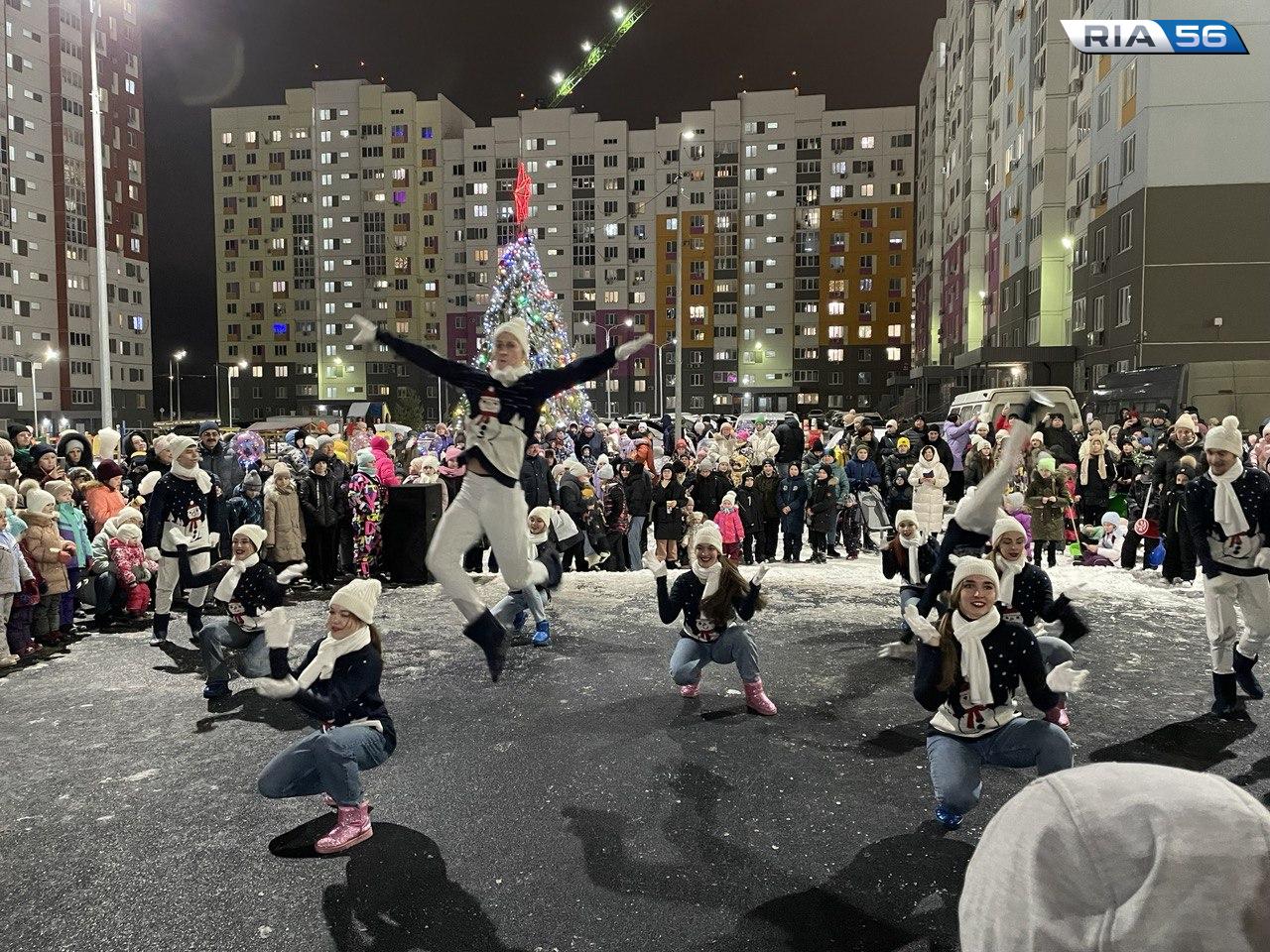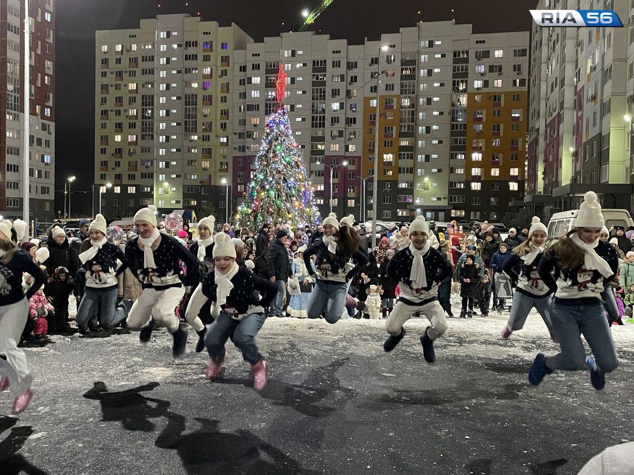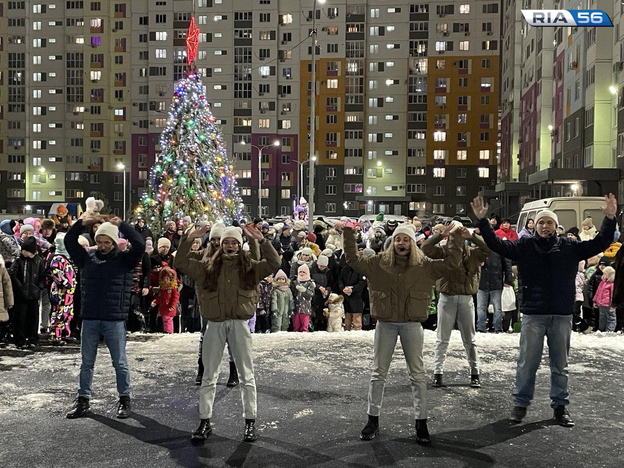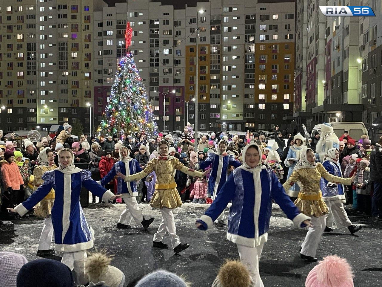 Сегодня в Оренбурге стартовала череда торжеств по случаю открытия новогодних елок в микрорайонах города.