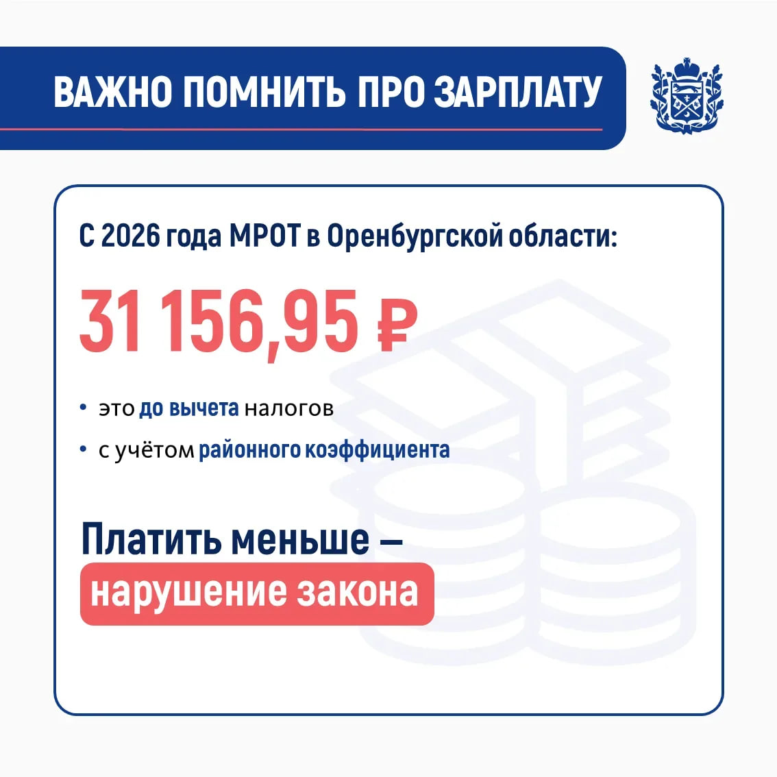 Также бизнесу напоминают о трудовых гарантиях. С 1 января 2026 года МРОТ в Оренбургской области — 31 156,95 руб. (уже с уральским коэффициентом 15%, до вычета НДФЛ). Платить меньше — нарушение. Есть еще отраслевые ориентиры по зарплате — их можно посмотреть на профильном сайте.
