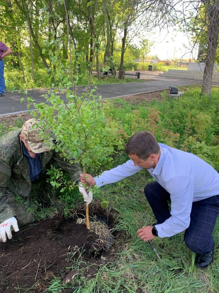 Сотрудники Дома культуры, администрации сельсовета и активные жители поселка высадили молодые березы вдоль центральной аллеи Парка Победы.