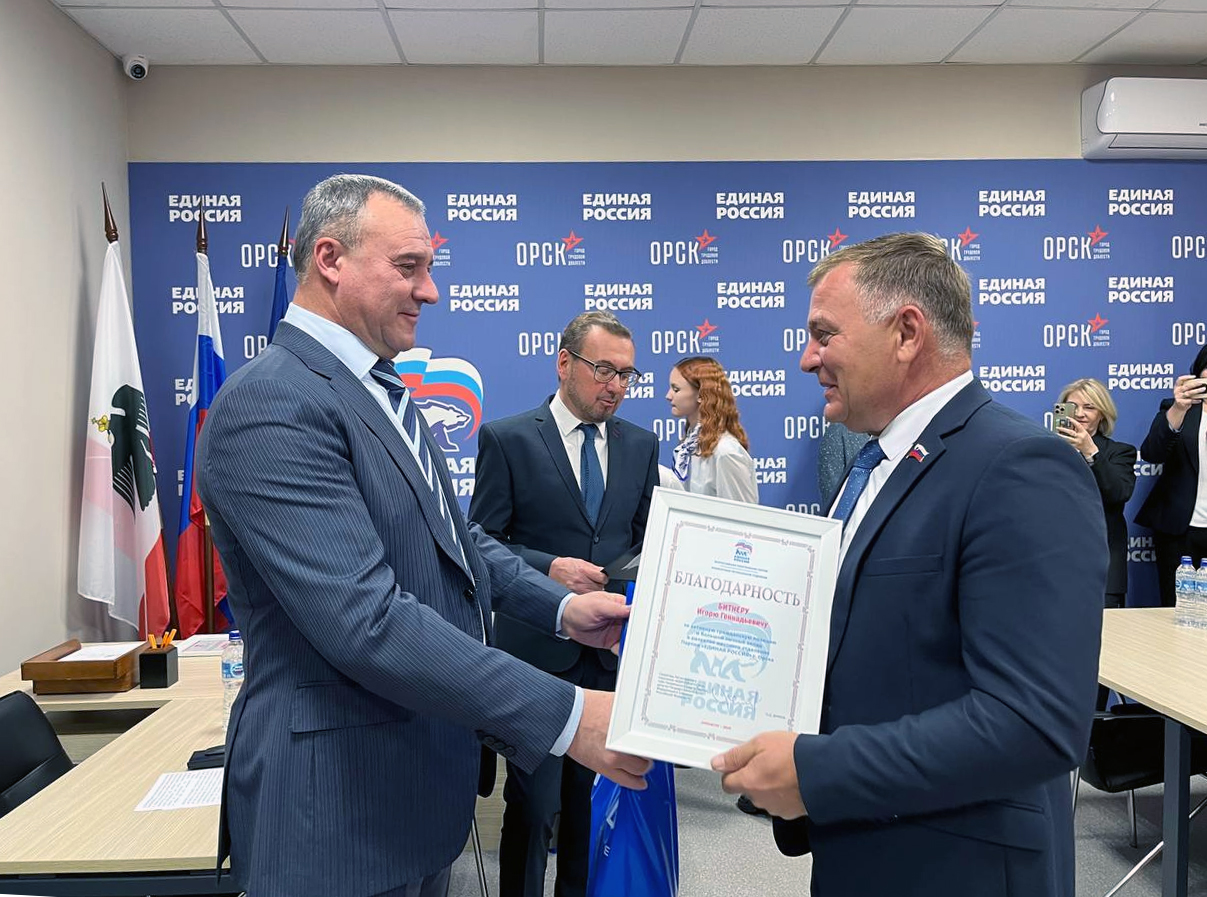 На открытии приемной Олег Димов вручил медали за образцовое выполнение воинского долга орчанам – участникам боевых действиях в Курской области. Кроме того, секретарь Оренбургского реготделения вручил партбилеты новым членам «Единой России», а также благодарственные письма представителям предприятий и активистам, внесшим значительный вклад в обустройство нового помещения.