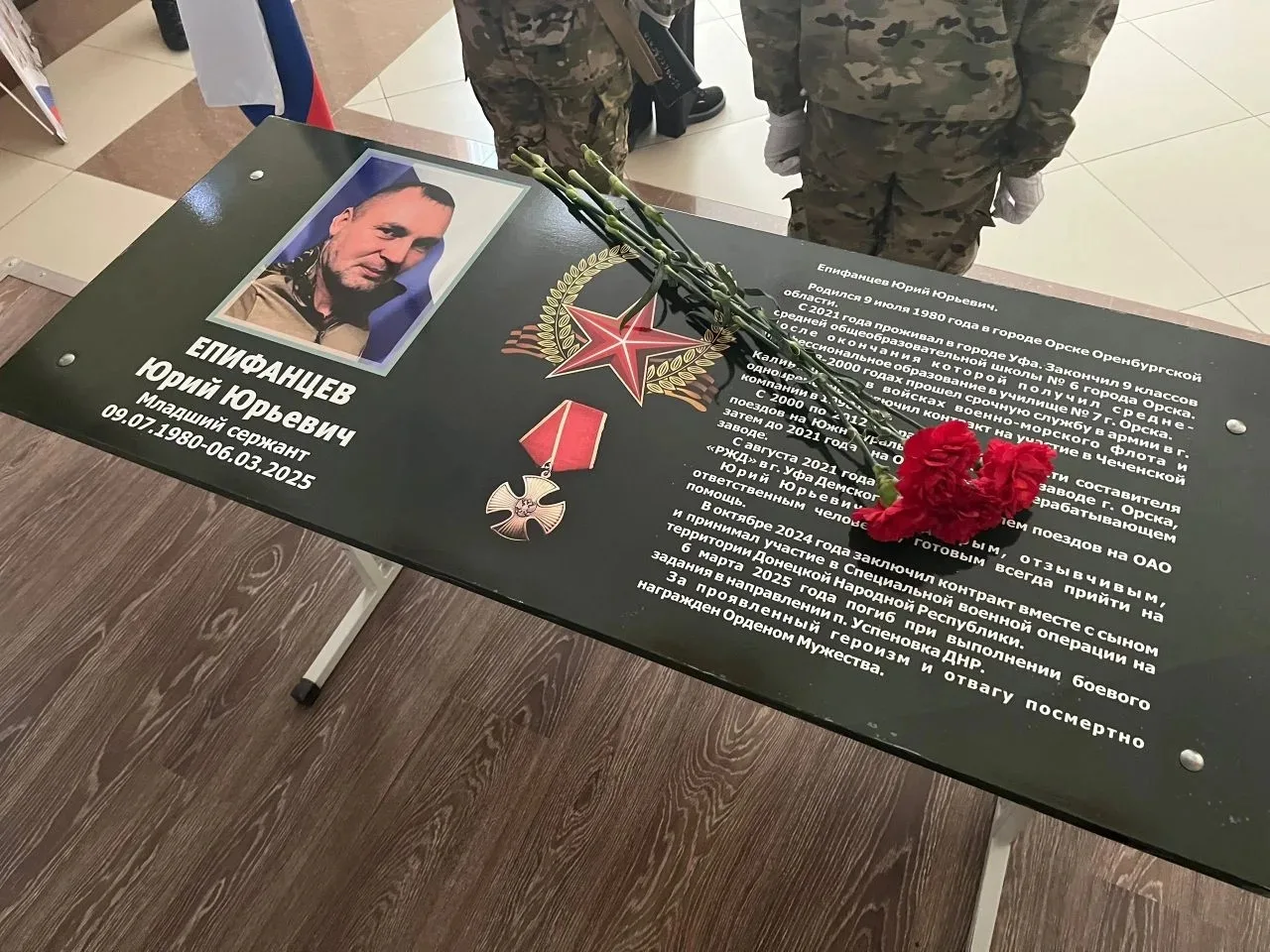И через три месяца, в марте 2025 года, в этом же районе погиб отец – Юрий Юрьевич Епифанцев. За героизм посмертно награжден Орденом Мужества. Мужчине было 44 года. Парту Героя открыли в орской школе № 6.