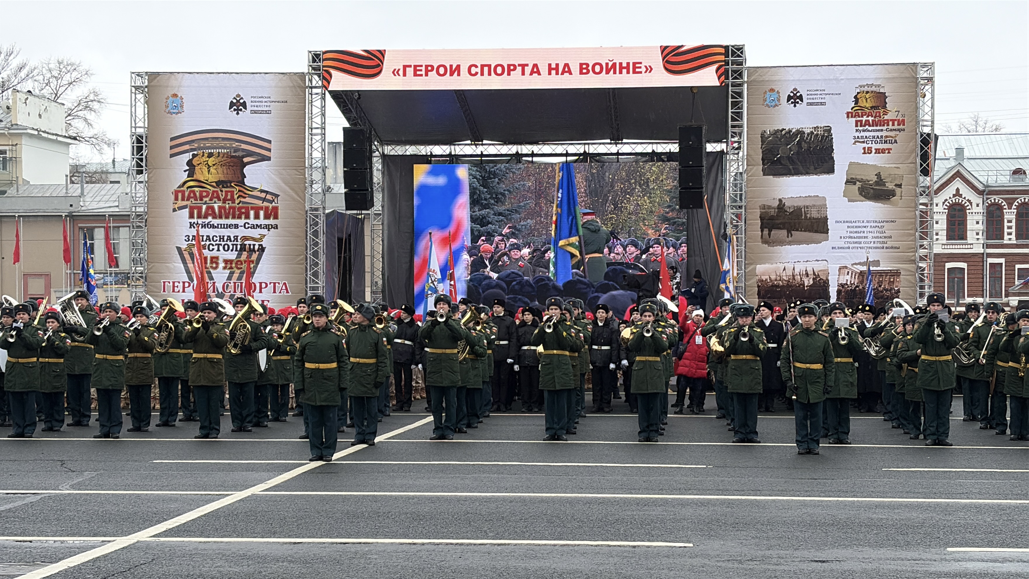 В пятнадцатый раз парадные расчеты прошли по площади имени В.В. Куйбышева в честь военного парада 7 ноября 1941 года