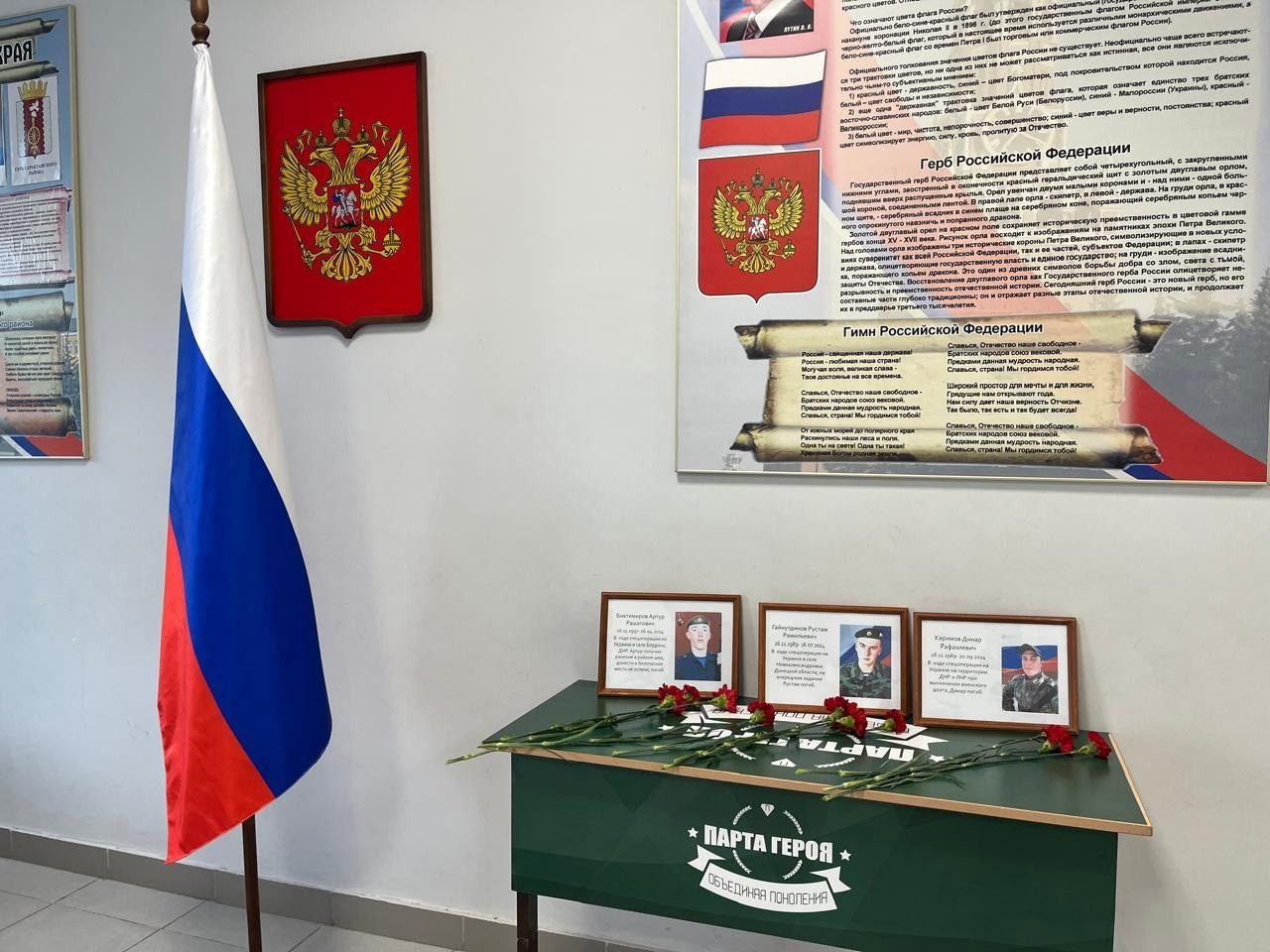 В школе номер 1 состоялось торжественное открытие «Парты Героя» в честь Артура Биктимирова, Рустама Гайнутдинова Рустама и Динара Каримова.