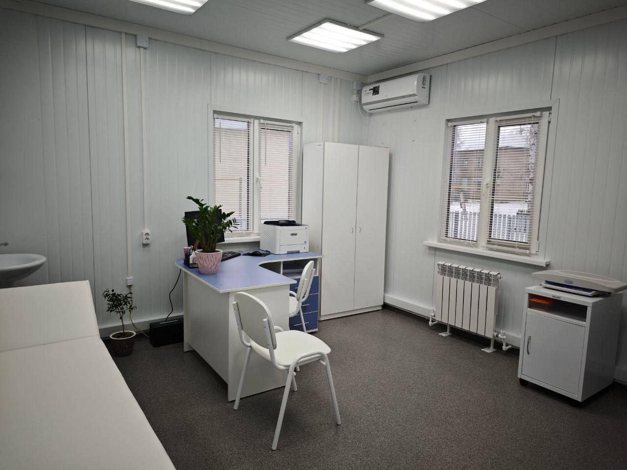 Новый модульный фельдшерско-акушерский пункт — это современное функциональное здание, где все предусмотрено для удобства пациентов и работы медицинского персонала. В здании расположены кабинеты приема, процедурный, прививочный, для медперсонала, хранения лекарств, уборочного инвентаря, санузел. Для свободного доступа маломобильных пациентов оборудован пандус. Просторный модульный ФАП расположен в центре села и подключен ко всем коммуникациям.
