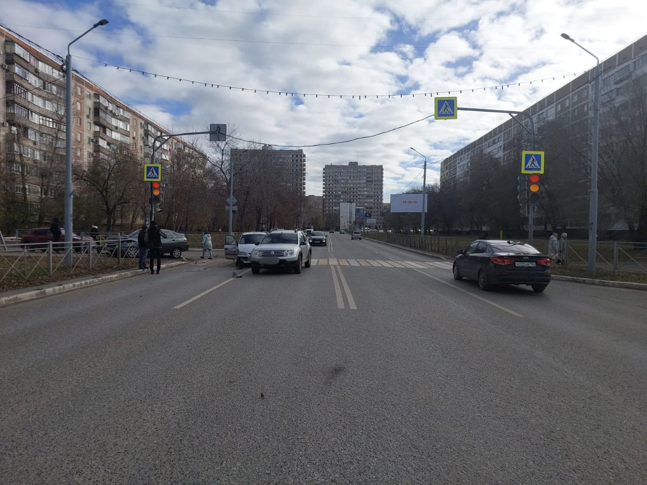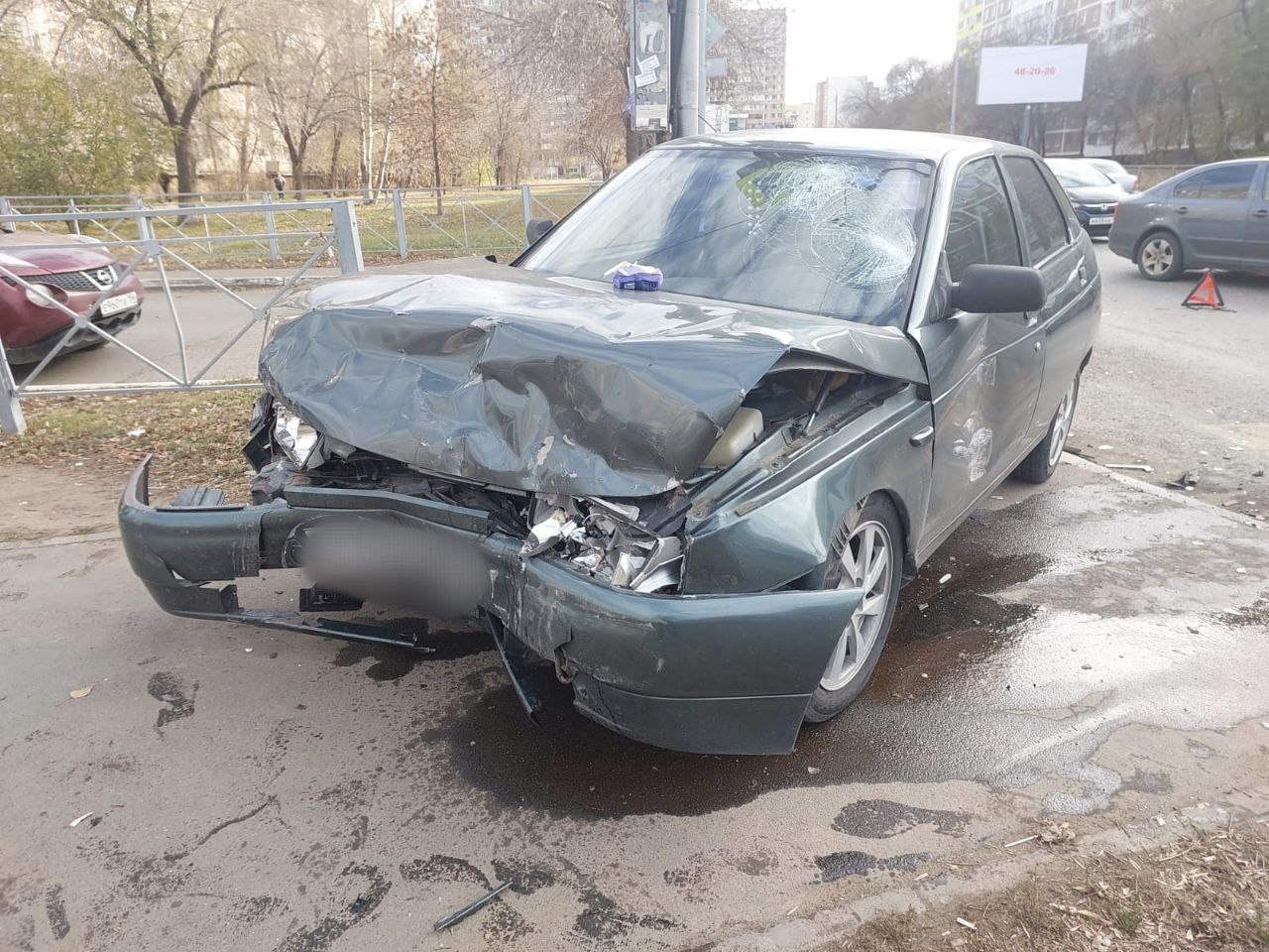 И врезался в «Ладу-2112», которая ехала во встречном направлении. После столкновения «Митсубиси» отбрасывает на легковушку «Рено».
