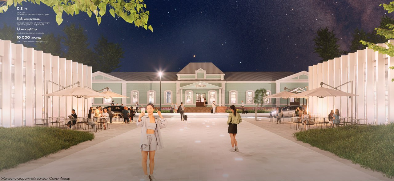 - в Соль-Илецке благоустроят привокзальную площадь вместе с прилегающей территорией по улице Вокзальной. Для туристов — общепит, уютные зоны для отдыха, амфитеатр и удобные дорожки.
