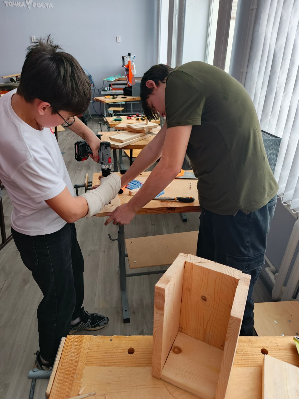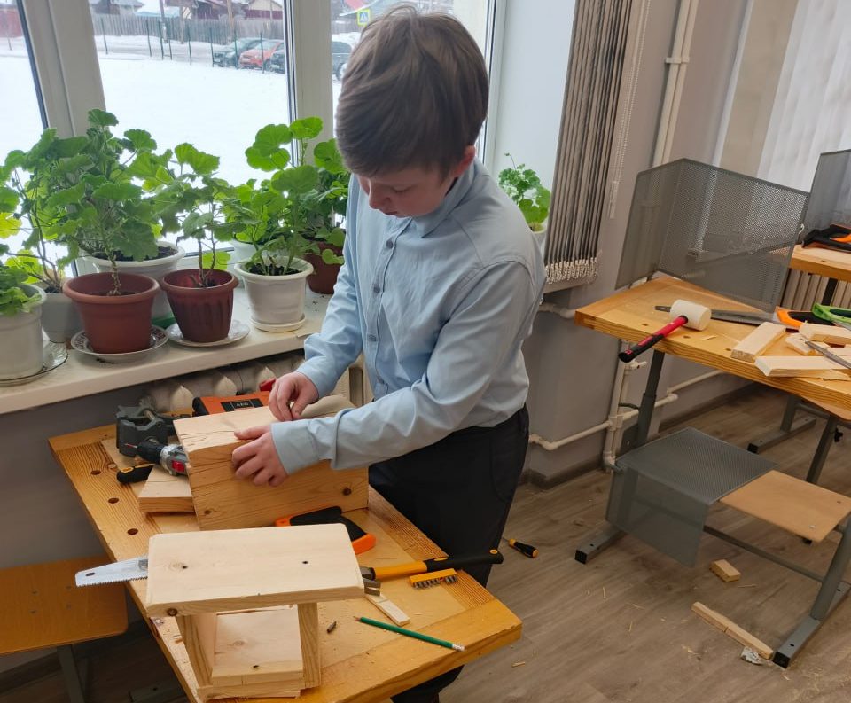 Заказ получили школьники из Колтубановки. Здесь в мастерских уже вовсю кипит работа. На уроках труда восьмиклассники вовсю делают скворечники.