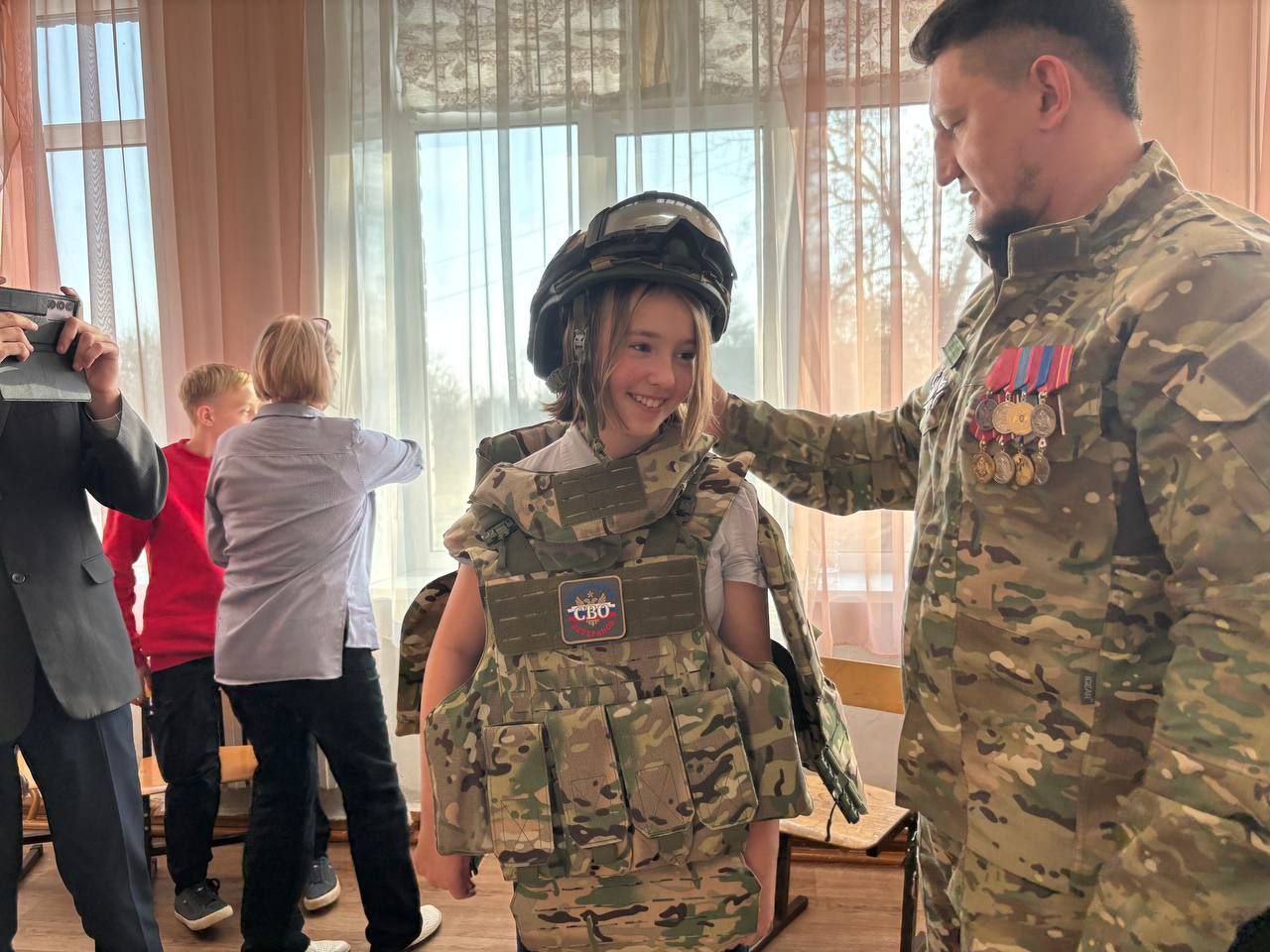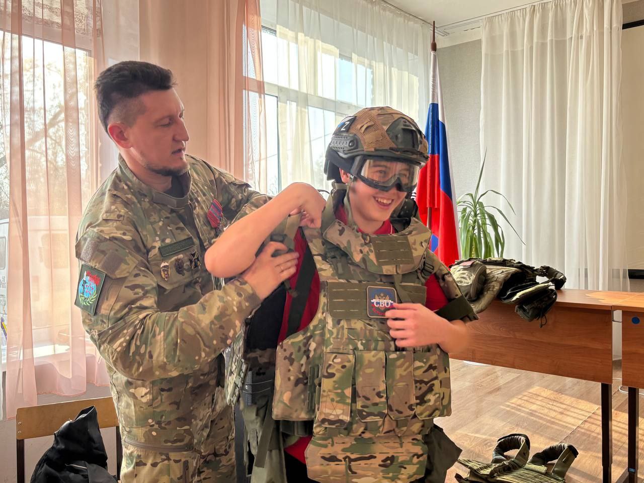 Участник СВО принёс с собой элементы экипировки. Ребята смогли примерить бронежилет и шлем, увидели рацию, оружие, аптечку и навигатор и даже попробовали на вкус содержимое сухпайка. Ребята выяснили, какими качествами должен обладать боец спецназа и узнали об основах оказания первой медицинской помощи.