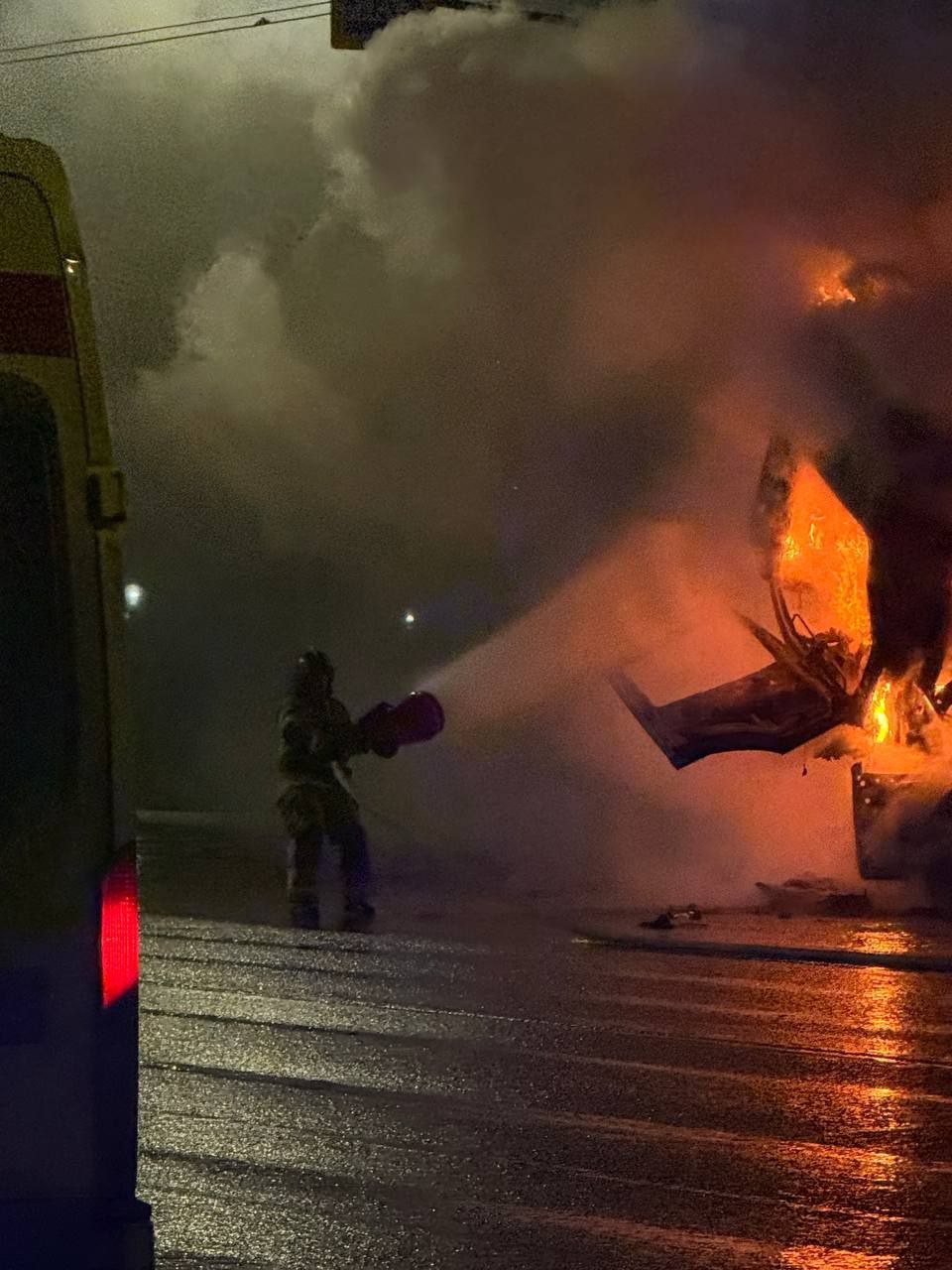 Вспыхнул мгновенно. В Оренбурге ночью сгорел «Камаз»