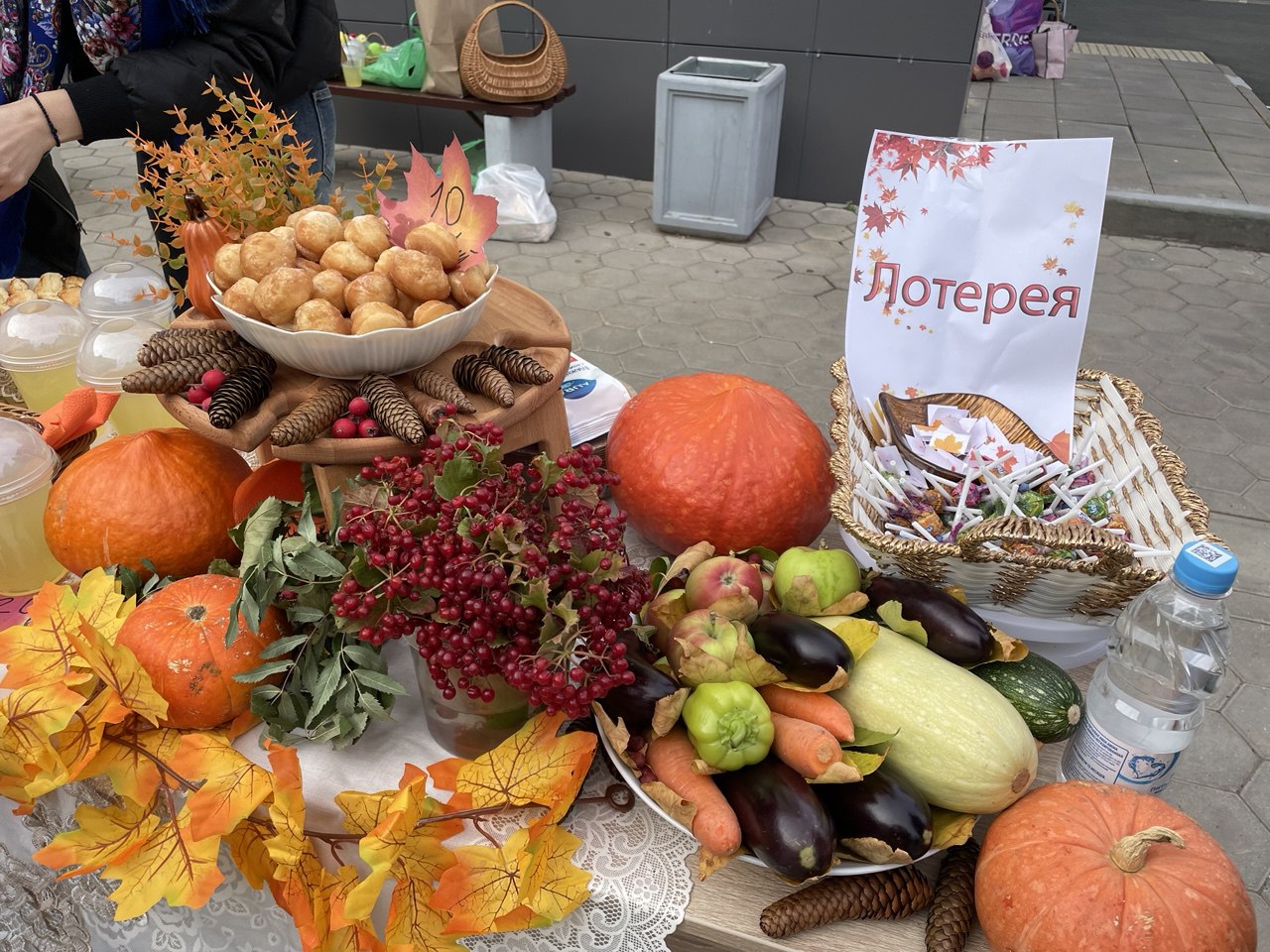 Еще на подходе к избирательному участку слышна залихватская музыка — у самых дверей развернулась веселая ярмарка. В кокошниках, с самоваром и сушками родители учащихся школы торгуют дарами осени, сладостями и всякими вкусняшками. Ну как тут устоять перед такой красотой и не полакомиться.