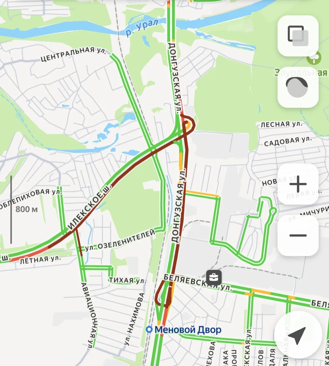 Движение сегодня утром парализовано. Затор на Донгузской и Илекском шоссе растянулся на километры. Яндекс Карты «горят» темно-бордовым.